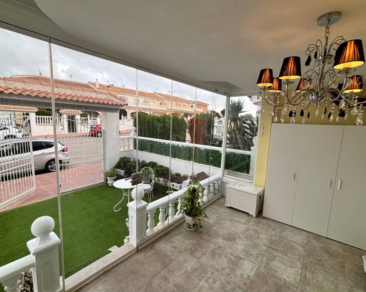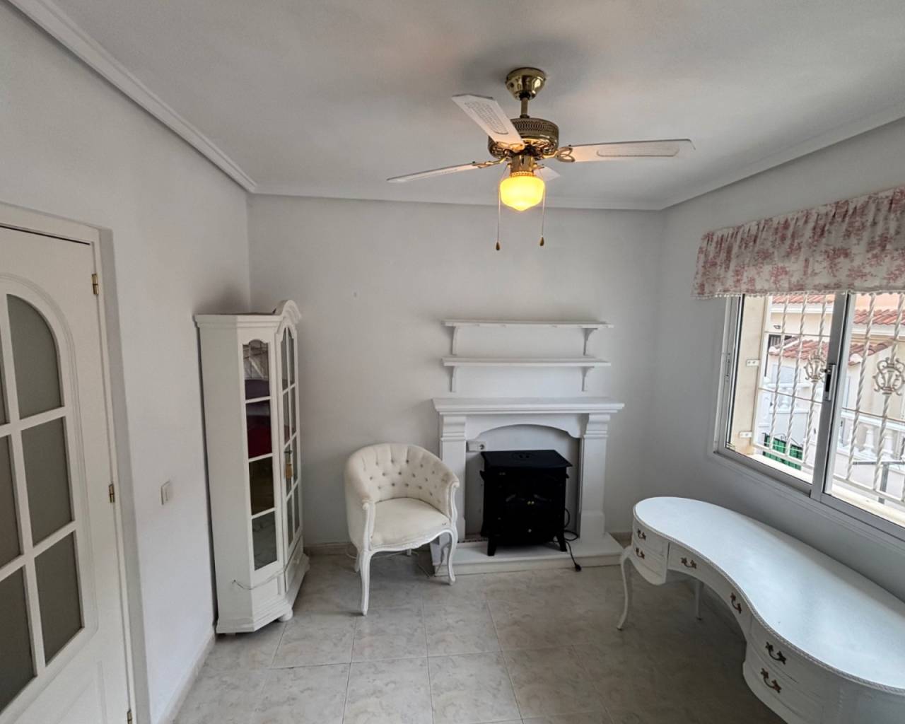Aquí tenemos esta casa adosada de 2 dormitorios en Monte Azul, ubicada en una urbanización consolidada con bar y restaurante, a solo 5 minutos en coche de los populares pueblos de Quesada y Benijófar. Los campos de golf La Finca y La Marquesa se encuentran a 5-10 minutos en coche, mientras que las hermosas playas de la Costa Blanca Sur se encuentran a unos 15 minutos. Bien cuidada, esta casa de 101 m² cuenta con una terraza delantera cubierta con cortinas de cristal. La planta baja consta de un luminoso salón-comedor independiente que da a una cocina independiente equipada con puerta a la parte trasera, un dormitorio doble y un baño con ducha. En la primera planta hay dos dormitorios dobles, ambos con ventiladores de techo, incluyendo el principal con acceso a una terraza cubierta. La terraza de los dos dormitorios está cubierta. Un baño familiar con ducha. En el exterior, el jardín delantero requiere poco mantenimiento. Esta propiedad también cuenta con aire acondicionado y, por supuesto, con acceso a la preciosa piscina y jardines comunitarios, a pocos pasos.