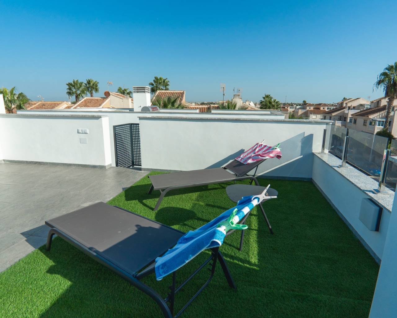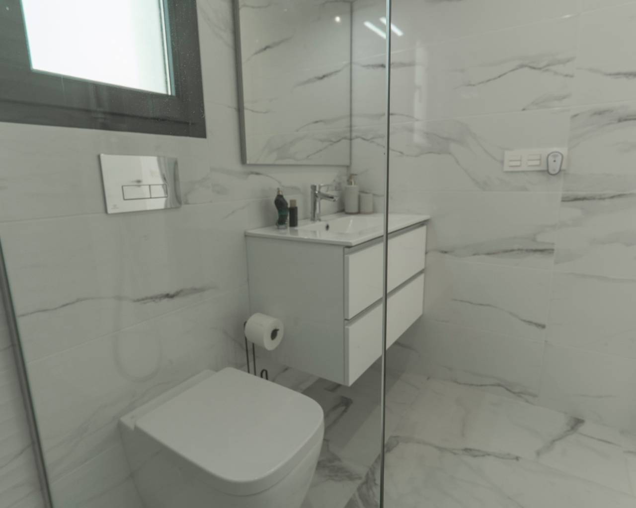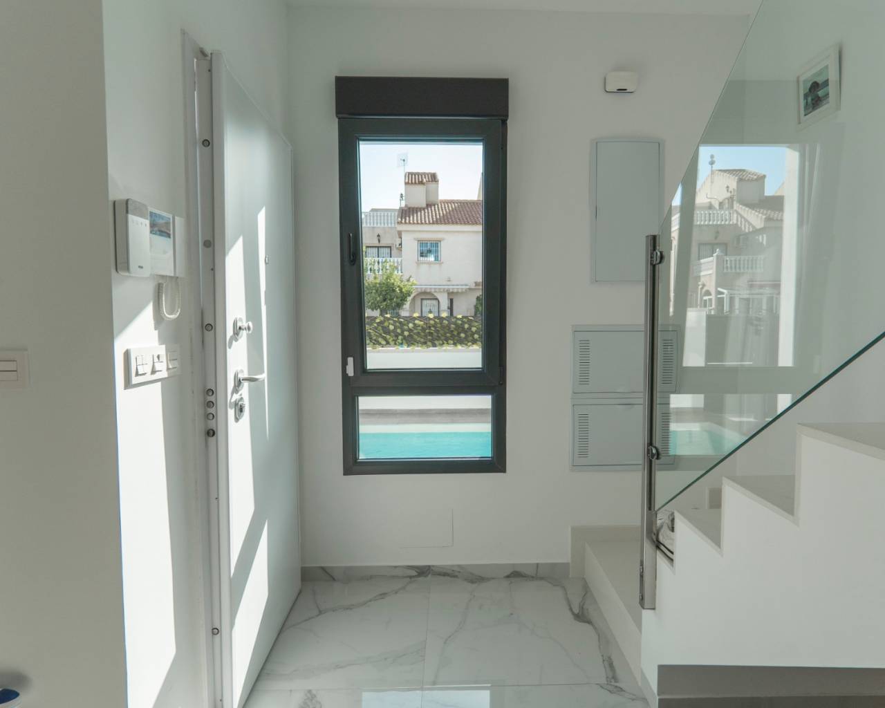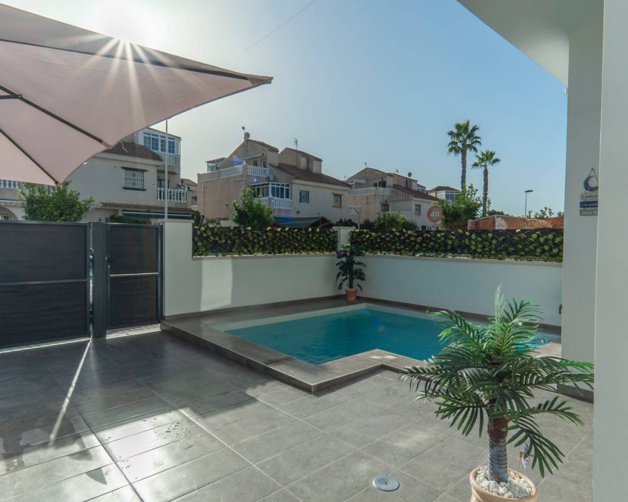 NUEVA - construida en 2025 - Villa independiente con piscina privada y solárium con vistas al lago salado en La Florida, Torrevieja FANTÁSTICA OPORTUNIDAD DE CONSEGUIR UNA EXCELENTE OFERTA, YA QUE ESTA MISMA PROPIEDAD (SIN EXTRAS) ESTÁ DISPONIBLE DIRECTAMENTE DEL CONSTRUCTOR POR UN PRECIO CONSIDERABLEMENTE MAYOR. Comprada a nueva por los actuales propietarios en marzo de 2025. Esta elegante casa combina un diseño contemporáneo con una vida al aire libre sin complicaciones: piscina privada, amplias terrazas y un solárium de 45,7 m² con impresionantes vistas al lago salado, todo ello a poca distancia de tiendas, playas y servicios locales. Ideal como vivienda permanente, refugio vacacional o inversión. Características principales Amueblado 3 habitaciones dobles | 3 baños Piscina privada, ducha exterior y varias terrazas. Solárium de 45,7 m² con vistas al lago salado y parciales a la montaña Moderna cocina abierta y sala de estar con acceso a la piscina Estacionamiento fuera de la carretera, puerta para peatones y puerta para automóviles Dormitorio principal y segundo dormitorio con baños en suite y armarios empotrados Escalera moderna con balaustrada de cristal y pérgola de acero en solárium Descripción de la propiedad Impecable chalet independiente en La Florida, Torrevieja . Diseñado para disfrutar del interior y el exterior, el luminoso salón de planta abierta se integra a través de las puertas del patio directamente con la terraza de la piscina, creando una conexión perfecta entre el salón y los soleados espacios exteriores. La moderna cocina complementa la distribución social y ofrece todo lo necesario para una vida diaria relajada o para recibir visitas. En la planta baja encontrará un dormitorio doble y un elegante baño familiar con ducha a ras de suelo, ideal para invitados o para dormir en la planta baja. Una imponente escalera con barandillas de cristal conduce a la planta superior, donde le esperan dos amplios dormitorios dobles. El dormitorio principal (12,4 m²) cuenta con dos armarios empotrados, puertas que dan a una terraza privada y un lujoso baño en suite con ducha de hidromasaje. El segundo dormitorio doble (12,5 m²) también cuenta con armarios empotrados, un elegante baño en suite y su propia terraza privada. Desde la terraza superior, una escalera independiente conduce a la joya de la corona de la villa: un solárium de 45,7 m² con una moderna pérgola de acero y vistas impresionantes a las salinas de Torrevieja y las colinas circundantes. Ya sea que busque un lugar tranquilo para tomar una copa al atardecer, un comedor al aire libre o un salón a la sombra en la azotea, el solárium ofrece una flexibilidad excepcional y un atractivo panorámico. Ubicación y estilo de vida Ubicada en la popular zona residencial de La Florida , esta villa ofrece una envidiable combinación de tranquilidad y comodidad. Se encuentra a pocos minutos de tiendas, cafeterías y supermercados locales, con fácil acceso al popular centro comercial Zenia Boulevard y a las playas de Orihuela Costa . Los servicios de Torrevieja, como restaurantes, centros de salud e instalaciones de ocio, se encuentran a poca distancia en coche, mientras que los aeropuertos de Alicante y Murcia están a unos 30-45 minutos. Las cercanas lagunas saladas y senderos costeros ofrecen magníficas opciones al aire libre para caminar y montar en bicicleta, lo que la convierte en una ubicación excelente tanto para familias como para quienes buscan el sol e inversores. Detalles adicionales Aire acondicionado integrado y persianas eléctricas en toda la casa. Construcción moderna con acabados contemporáneos. Construcción moderna terminada en marzo de 2025 Electrodomésticos de bajo consumo energético y exterior de bajo mantenimiento. Rendimiento energético B Tu próximo paso Concierte su visita privada hoy mismo. Esta villa independiente con piscina privada y sensacionales vistas al solárium no estará disponible por mucho tiempo.