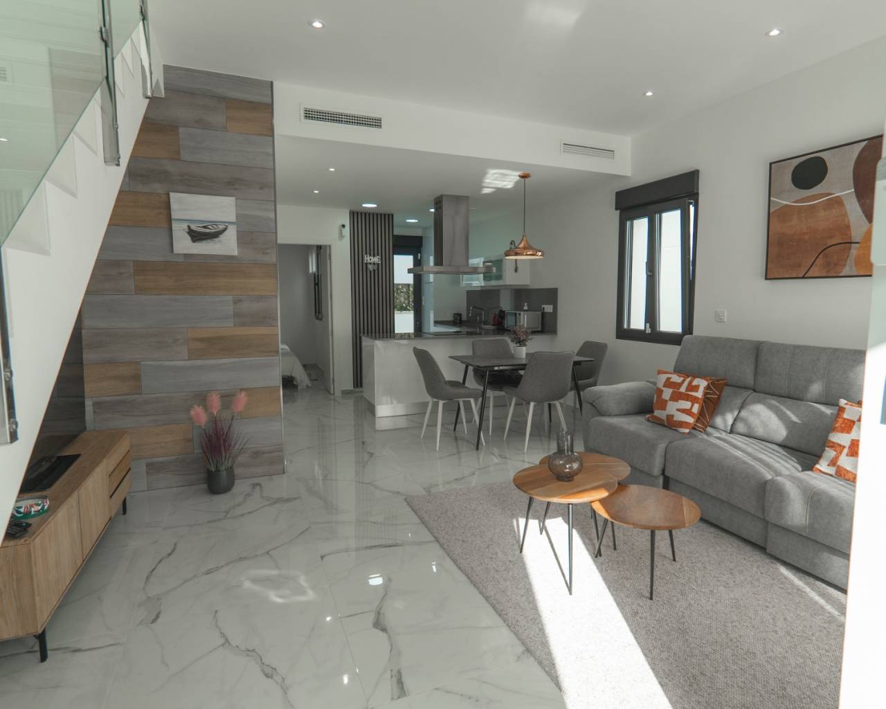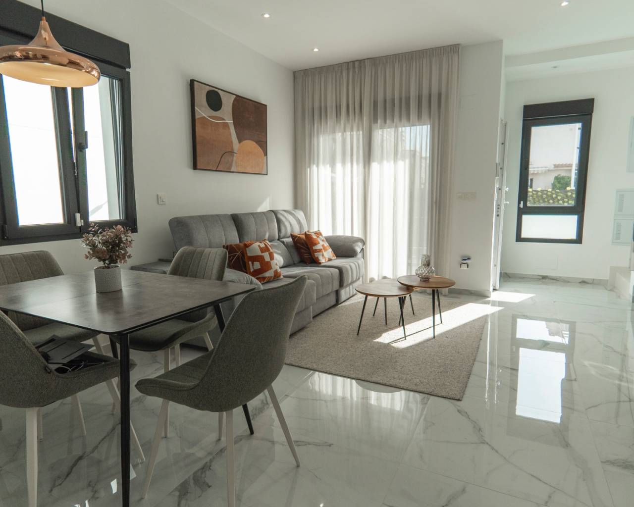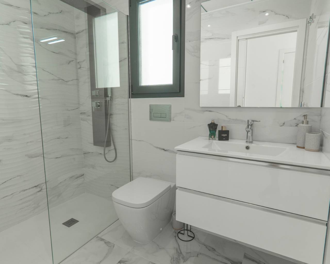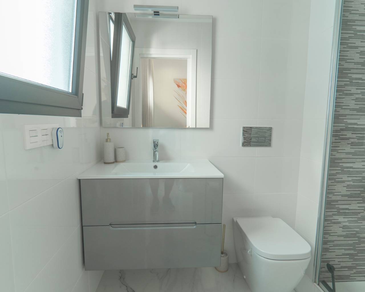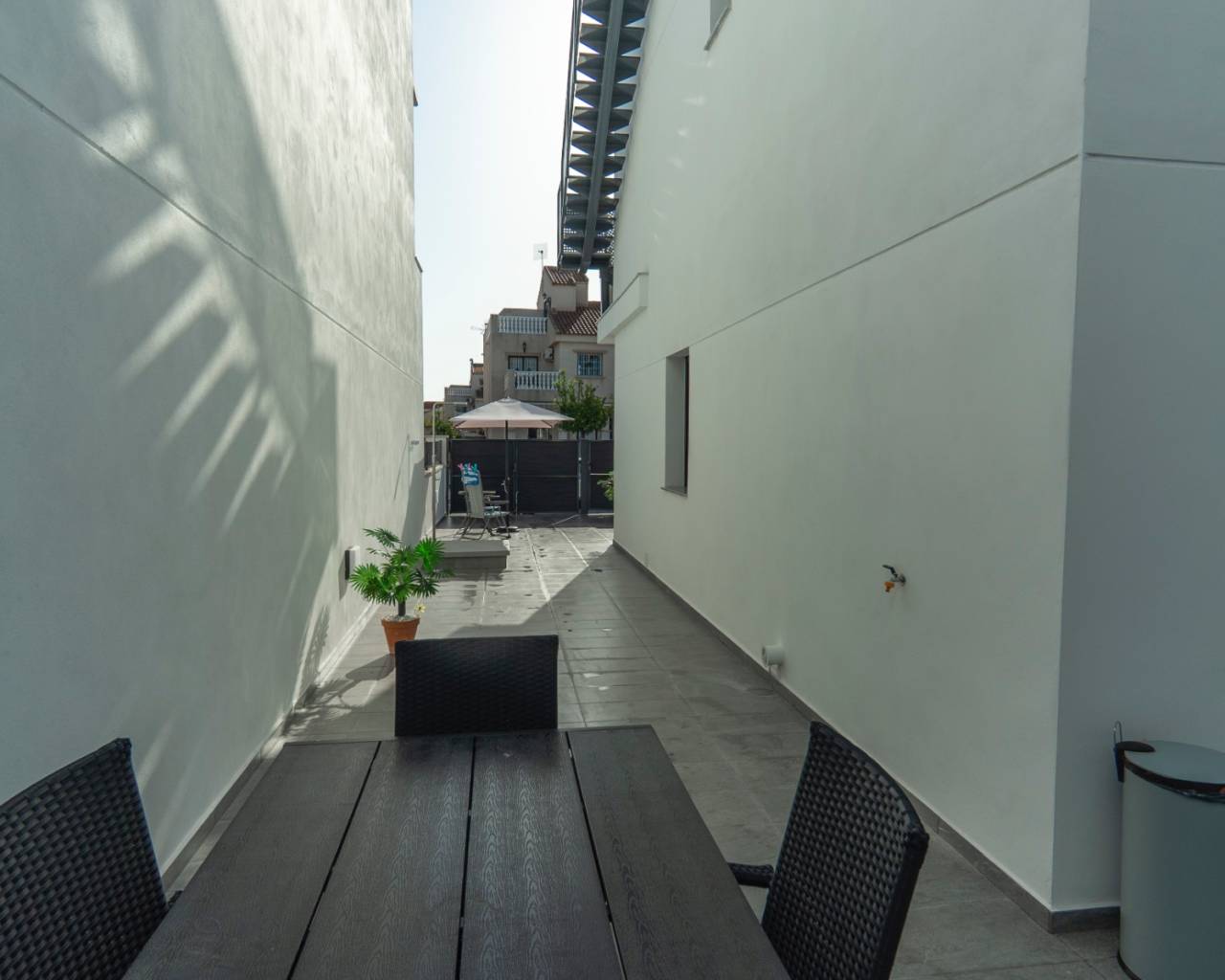 NUEVA - construida en 2025 - Villa independiente con piscina privada y solárium con vistas al lago salado en La Florida, Torrevieja FANTÁSTICA OPORTUNIDAD DE CONSEGUIR UNA EXCELENTE OFERTA, YA QUE ESTA MISMA PROPIEDAD (SIN EXTRAS) ESTÁ DISPONIBLE DIRECTAMENTE DEL CONSTRUCTOR POR UN PRECIO CONSIDERABLEMENTE MAYOR. Comprada a nueva por los actuales propietarios en marzo de 2025. Esta elegante casa combina un diseño contemporáneo con una vida al aire libre sin complicaciones: piscina privada, amplias terrazas y un solárium de 45,7 m² con impresionantes vistas al lago salado, todo ello a poca distancia de tiendas, playas y servicios locales. Ideal como vivienda permanente, refugio vacacional o inversión. Características principales Amueblado 3 habitaciones dobles | 3 baños Piscina privada, ducha exterior y varias terrazas. Solárium de 45,7 m² con vistas al lago salado y parciales a la montaña Moderna cocina abierta y sala de estar con acceso a la piscina Estacionamiento fuera de la carretera, puerta para peatones y puerta para automóviles Dormitorio principal y segundo dormitorio con baños en suite y armarios empotrados Escalera moderna con balaustrada de cristal y pérgola de acero en solárium Descripción de la propiedad Impecable chalet independiente en La Florida, Torrevieja . Diseñado para disfrutar del interior y el exterior, el luminoso salón de planta abierta se integra a través de las puertas del patio directamente con la terraza de la piscina, creando una conexión perfecta entre el salón y los soleados espacios exteriores. La moderna cocina complementa la distribución social y ofrece todo lo necesario para una vida diaria relajada o para recibir visitas. En la planta baja encontrará un dormitorio doble y un elegante baño familiar con ducha a ras de suelo, ideal para invitados o para dormir en la planta baja. Una imponente escalera con barandillas de cristal conduce a la planta superior, donde le esperan dos amplios dormitorios dobles. El dormitorio principal (12,4 m²) cuenta con dos armarios empotrados, puertas que dan a una terraza privada y un lujoso baño en suite con ducha de hidromasaje. El segundo dormitorio doble (12,5 m²) también cuenta con armarios empotrados, un elegante baño en suite y su propia terraza privada. Desde la terraza superior, una escalera independiente conduce a la joya de la corona de la villa: un solárium de 45,7 m² con una moderna pérgola de acero y vistas impresionantes a las salinas de Torrevieja y las colinas circundantes. Ya sea que busque un lugar tranquilo para tomar una copa al atardecer, un comedor al aire libre o un salón a la sombra en la azotea, el solárium ofrece una flexibilidad excepcional y un atractivo panorámico. Ubicación y estilo de vida Ubicada en la popular zona residencial de La Florida , esta villa ofrece una envidiable combinación de tranquilidad y comodidad. Se encuentra a pocos minutos de tiendas, cafeterías y supermercados locales, con fácil acceso al popular centro comercial Zenia Boulevard y a las playas de Orihuela Costa . Los servicios de Torrevieja, como restaurantes, centros de salud e instalaciones de ocio, se encuentran a poca distancia en coche, mientras que los aeropuertos de Alicante y Murcia están a unos 30-45 minutos. Las cercanas lagunas saladas y senderos costeros ofrecen magníficas opciones al aire libre para caminar y montar en bicicleta, lo que la convierte en una ubicación excelente tanto para familias como para quienes buscan el sol e inversores. Detalles adicionales Aire acondicionado integrado y persianas eléctricas en toda la casa. Construcción moderna con acabados contemporáneos. Construcción moderna terminada en marzo de 2025 Electrodomésticos de bajo consumo energético y exterior de bajo mantenimiento. Rendimiento energético B Tu próximo paso Concierte su visita privada hoy mismo. Esta villa independiente con piscina privada y sensacionales vistas al solárium no estará disponible por mucho tiempo.