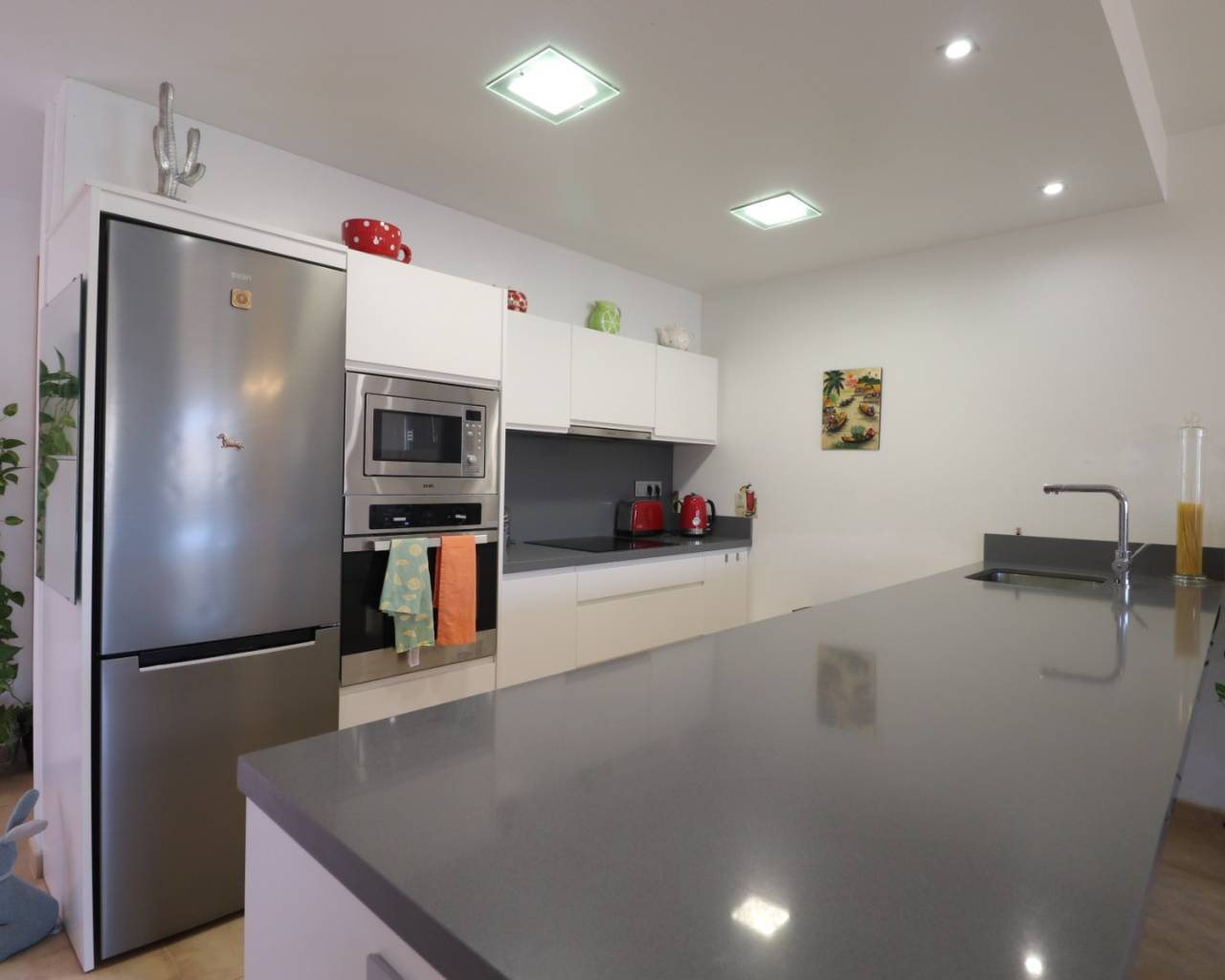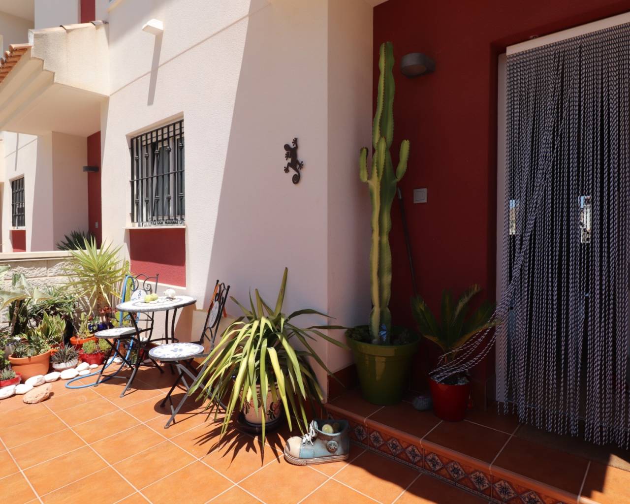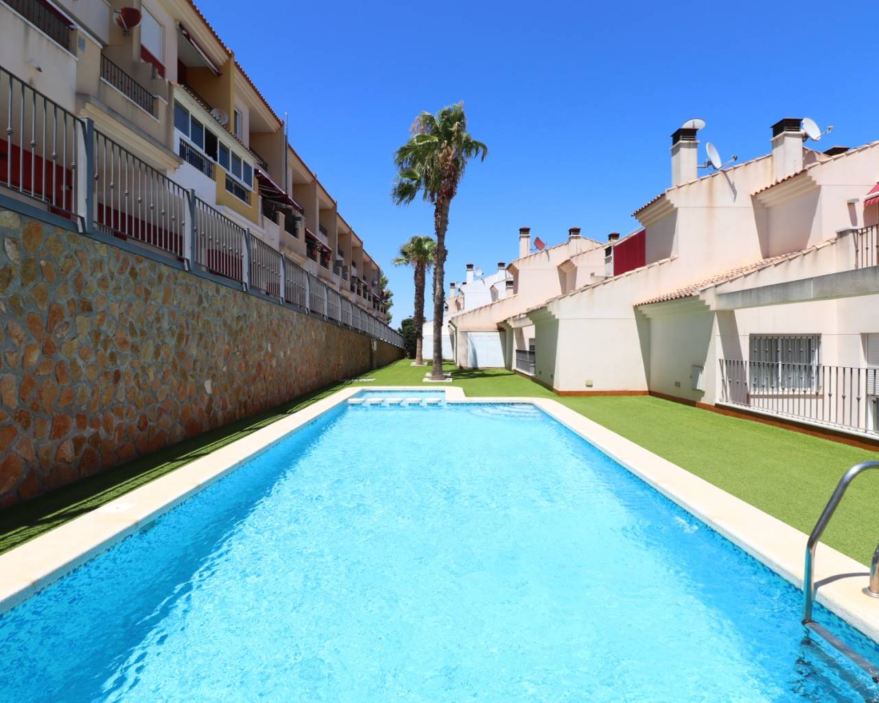 Esta casa adosada de tres dormitorios y orientación este en Benijófar se encuentra en una urbanización encantadora y bien cuidada, a solo 5 o 10 minutos a pie de una amplia gama de servicios, como un parque con lago, un centro comercial, cafeterías populares, restaurantes y un supermercado de una importante cadena. El campo de golf La Marquesa en Rojales está a solo 10 minutos en coche y la popular playa de Guardamar a 15 minutos. Distribuida en tres plantas y con una elegante distribución, esta espaciosa casa de 174 m² cuenta con un salón diáfano con puertas acristaladas que dan a una terraza parcialmente cubierta con vistas a la piscina comunitaria. La moderna cocina equipada es elegante y funcional, y también hay un práctico aseo en la planta principal. Unas escaleras conducen tanto a la primera planta como al amplio garaje subterráneo. En la planta superior, la primera planta ofrece tres dormitorios dobles, todos con armarios empotrados. Dos de los dormitorios tienen acceso a terrazas privadas, una de ellas con vistas a las montañas, y hay dos elegantes baños con ducha, uno de ellos en suite en el dormitorio principal. En el exterior hay un jardín embaldosado de fácil mantenimiento, y al garaje de 58 m² se accede mediante una entrada segura y cerrada. Los extras incluyen aire acondicionado y acceso a una piscina comunitaria impecablemente cuidada. Una fantástica oportunidad para vivir a tiempo completo o como casa de vacaciones en una ubicación privilegiada de la Costa Blanca Sur.