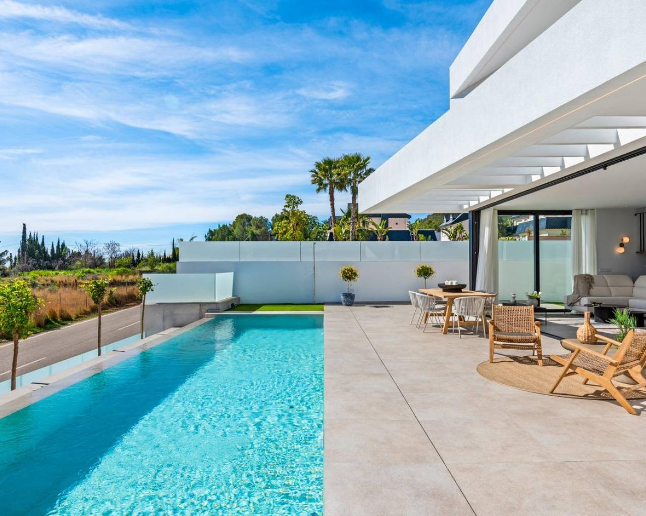 VILLAS DE OBRA NUEVA EN POLOP Residencial de obra nueva de 46 villas en Polop. Villas modernas construidas en 3 plantas, dispone de 3 dormitorios, 3 baños, aseo de invitados, cocina moderna americana con amplio salón comedor tiene acceso directo a la terraza con la piscina, armarios empotrados, sótano con garaje y trastero, aire acondicionado, electrodomésticos. La ciudad de Polop ofrece un sorprendente abanico de opciones para los amantes de la vida al aire libre rodeados de naturaleza y una paz inigualable. El municipio disfruta de un clima mediterráneo con temperaturas más frescas y aire más limpio, situado a menos de 10 kilómetros de Benidorm, Altea y sus playas. Se extiende desde los ríos Guadalest y Algar hasta la localidad de Villajoyosa, incluyendo las playas del Albir y Benidorm; hacia el interior limita con Callosa y Guadalest.