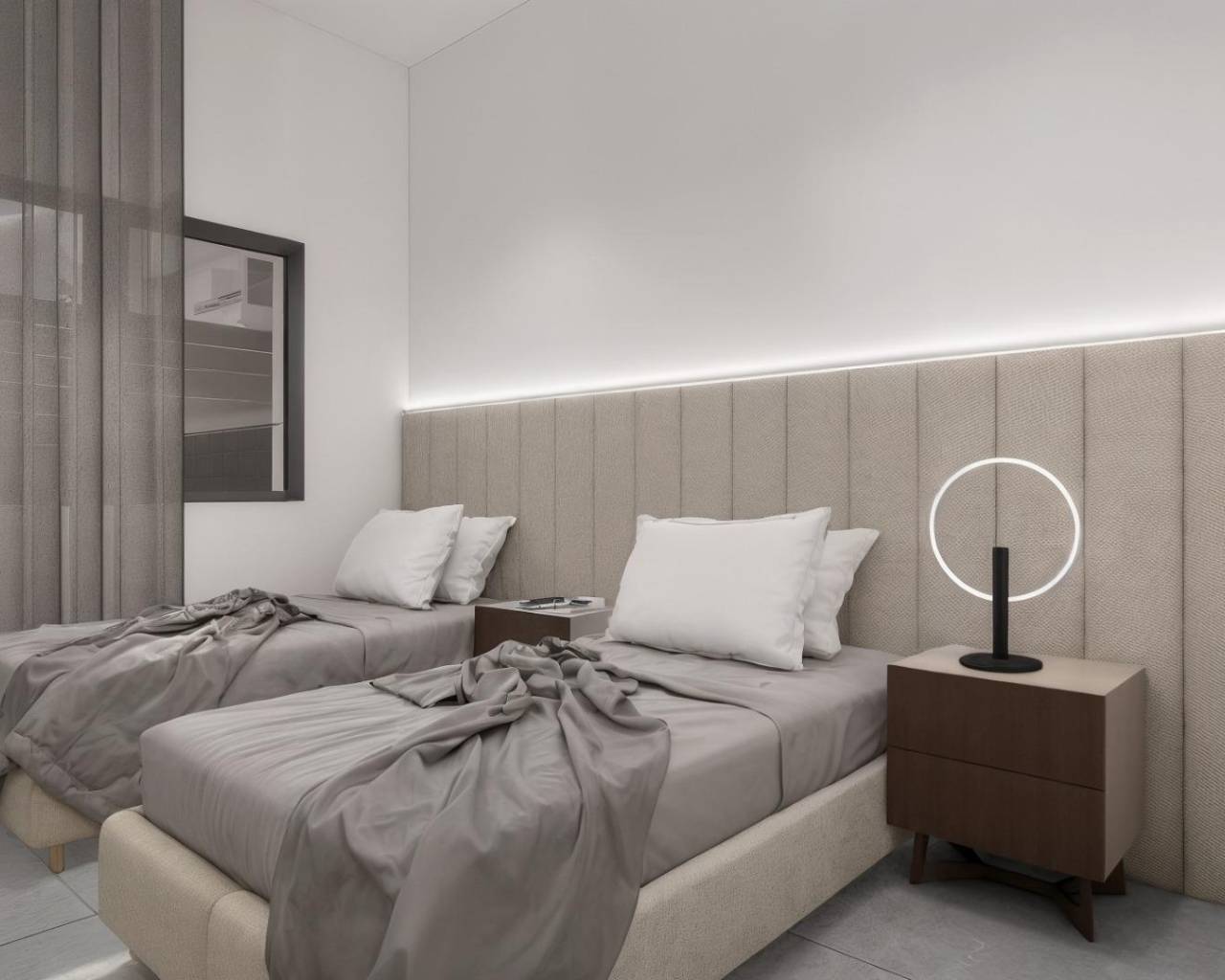 Modernas villas de nueva construcción en La Herrada Los Montesinos con piscina privada Exclusivo proyecto residencial en un entorno tranquilo Situada en la prestigiosa urbanización La Herrada, en Los Montesinos, esta exclusiva promoción de 16 modernas villas ofrece privacidad, comodidad y una excelente calidad de vida. La Herrada es conocida por su tranquilo ambiente residencial, su proximidad a los servicios cotidianos y su privilegiada ubicación entre las famosas salinas de Torrevieja y La Mata. Es un lugar ideal para aquellos que buscan un estilo de vida mediterráneo relajado y saludable en el sur de la Costa Blanca. Diseño contemporáneo con espacios interiores optimizados Cada villa tiene 130 m² de superficie habitable bien distribuida en dos plantas, diseñadas para maximizar la luz natural y la funcionalidad. Construidas en parcelas a partir de 250 m², las propiedades ofrecen amplias zonas exteriores perfectas para tomar el sol, divertirse o relajarse junto a la piscina privada. Cómoda distribución en dos plantas La planta baja cuenta con un salón diáfano con cocina totalmente integrada y acceso directo al jardín y a la zona de la piscina. Esta planta también incluye dos dormitorios, un cuarto de baño completo y un práctico lavadero. En la planta superior hay dos amplios dormitorios, cada uno con su propio cuarto de baño, uno de ellos en suite. Ambos dormitorios tienen acceso a una terraza privada abierta de 28 m². Para aquellos que deseen aún más espacio exterior, hay un solárium opcional en la azotea disponible con un coste adicional. Acabados de alta calidad y características modernas Las villas incluyen acabados de calidad, como muebles de baño, espejos, mamparas de ducha y calefacción por suelo radiante en todos los cuartos de baño. Hay preinstalación para aire acondicionado por conductos, puerta de entrada motorizada para vehículos, aparcamiento privado en la parcela y acceso residencial cerrado a través de una calle interna privada. Ubicación privilegiada cerca de los principales servicios y atracciones Playas de Guardamar y Torrevieja a 9 km La Marquesa Golf, La Finca Golf y Vistabella Golf a menos de 5 km Aeropuerto de Alicante a 29 km Parques naturales, salinas, rutas ciclistas y senderos para hacer senderismo en las inmediaciones Viva cómodamente en el corazón de la Costa Blanca Estas villas de nueva construcción en Los Montesinos ofrecen la combinación perfecta de comodidad moderna, entorno natural y excelente accesibilidad. Tanto si busca una residencia permanente como una casa de vacaciones, esta promoción le ofrece todo lo que necesita para disfrutar de un estilo de vida mediterráneo tranquilo y cómodo. Póngase en contacto con nosotros hoy mismo para concertar una visita y asegurarse su nueva vivienda en La Herrada. 347