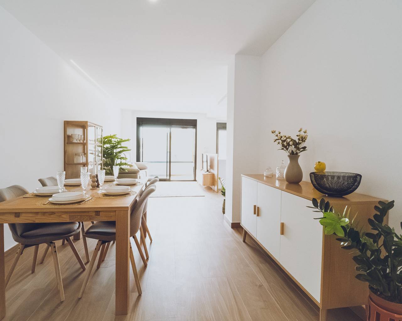 El interior de los apartamentos y áticos en Redován está pensado para ofrecer un espacio moderno y funcional. Con tres dormitorios y dos baños, estas viviendas son perfectas para familias o para quienes buscan espacio adicional. Las persianas eléctricas y la preinstalación de aire acondicionado aseguran un ambiente confortable durante todo el año. Los armarios empotrados ofrecen soluciones de almacenamiento prácticas, mientras que la domótica integrada permite un control eficiente de las funciones del hogar, adaptándose a las necesidades de la vida moderna.