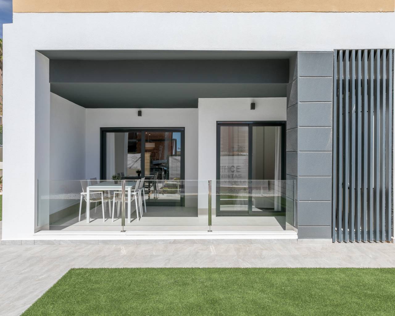 El entorno exterior de este residencial en Torrevieja está cuidadosamente diseñado para ofrecer un estilo de vida relajado y en contacto con la naturaleza. Las viviendas cuentan con terrazas y jardines privados, ideales para disfrutar del clima mediterráneo. Los áticos disponen de solárium, proporcionando un espacio adicional para el ocio al aire libre y la contemplación de las vistas al mar. La comunidad también ofrece un garaje comunitario, asegurando comodidad y seguridad para los vehículos de los residentes.