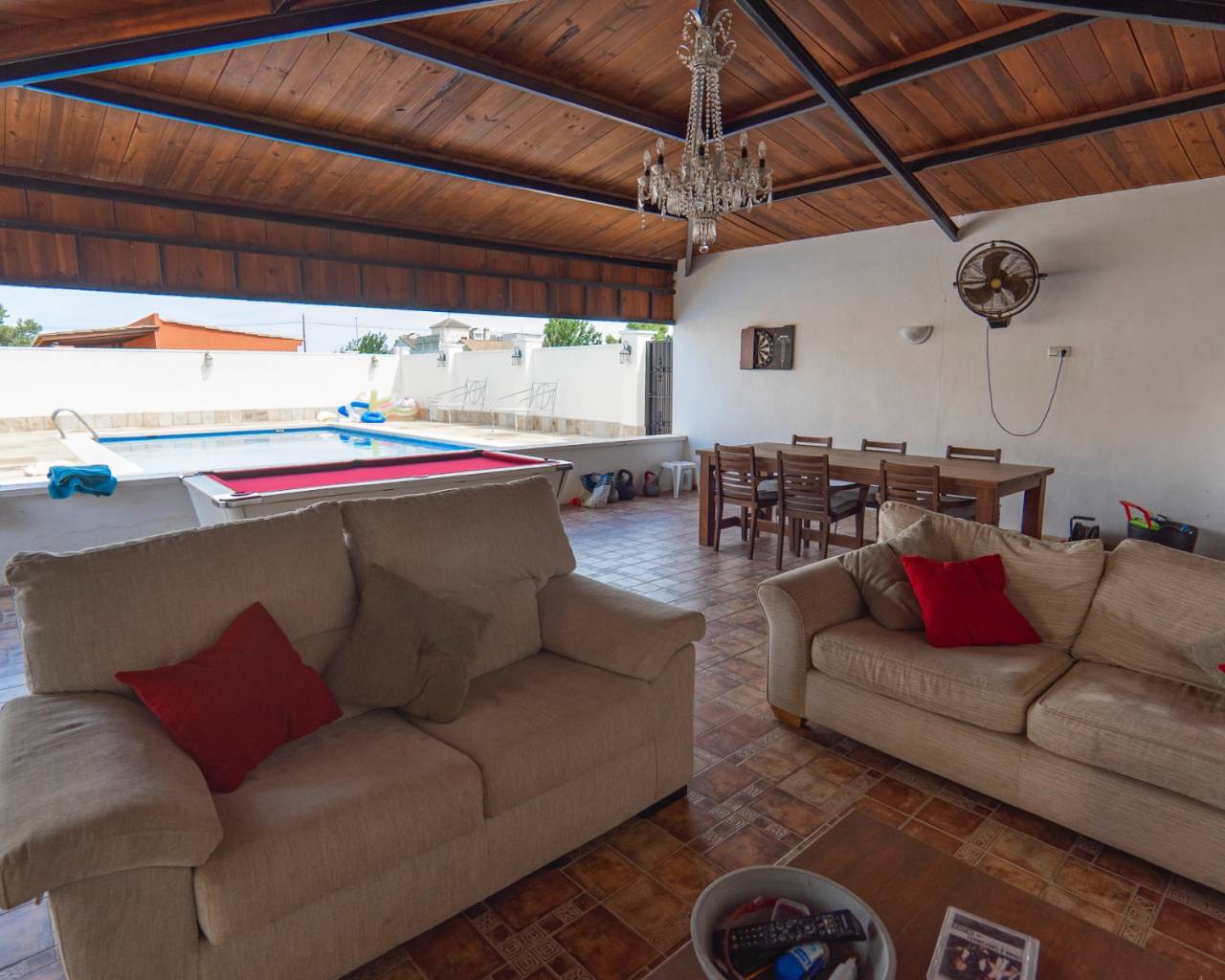 Luxury Country Villa with Stables for Sale in Heredades, Costa Blanca South A Spacious Villa in a Prime Location This east and west facing detached country villa with private pool, stables and paddock is set on a generous 2286m² plot in the charming hamlet of Las Heredades, between Formentera del Segura and Almoradí. The property is only a short 6–7 minute walk into the village centre and just 5 minutes by car to Formentera del Segura, Rojales, and Benijofar. With the golden beaches of Guardamar del Segura only 15 minutes away, and Alicante Airport reachable in just 35 minutes, this home enjoys an ideal balance of peace and convenience. Elegant Living and Guest Accommodation The main villa offers four bedrooms and three bathrooms plus a cloakroom. The master suite includes a walk-in wardrobe and a luxurious en suite bathroom with both bath and shower. Two further bedrooms also benefit from private en suites, while another room is currently fitted as a golf simulator but could easily serve as a fifth bedroom. A country-style modern kitchen opens to the dining area with direct access to the terrace, providing wonderful views across the pool and gardens. There is also a dedicated office within the main living room, as well as a utility room, fitted wardrobes, air conditioning, and heating panels throughout. Separate guest accommodation extends the property further with two bedrooms, a wetroom bathroom, kitchen, and living space, perfect for visiting family or rental opportunities. Outdoor Lifestyle and Equestrian Facilities The outdoor areas are designed for both relaxation and entertainment. A private pool surrounded by tiled terraces is complemented by a summer kitchen, BBQ, and covered seating areas. The gardens include a decorative fountain and ample parking under the carport. For equestrian lovers, the three stables, tack room and paddock make this villa truly unique, offering a rare lifestyle opportunity in this part of the Costa Blanca South. The Surrounding Area Heredades itself is a traditional Spanish village with a warm and welcoming feel, while nearby Formentera del Segurais just five minutes away with shops, local restaurants, and annual fiestas. Rojales is well known for its weekly markets and cultural attractions, while Ciudad Quesada offers international restaurants, golf at La Marquesa, and family activities including a water park. The bustling town of Almoradí adds further amenities, with a famous Saturday market and authentic Spanish lifestyle. Beaches, Golf and Accessibility In just 15 minutes you can reach the blue flag beaches of Guardamar del Segura, renowned for their dunes and wide golden sands. Golf lovers are spoilt for choice, with La Marquesa Golf in Ciudad Quesada only 10 minutes away, and several more courses within easy reach. Alicante Airport is a comfortable 35-minute drive, while Murcia International Airport is about 50 minutes. A Unique Opportunity on the Costa Blanca South This villa is a rare find — a spacious country property with equestrian facilities, private guest accommodation, and excellent access to beaches, golf, and transport links. It combines modern living with traditional charm, making it ideal as a family home, holiday retreat, or investment.