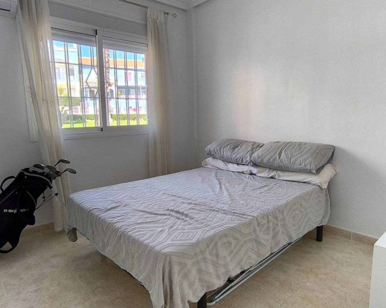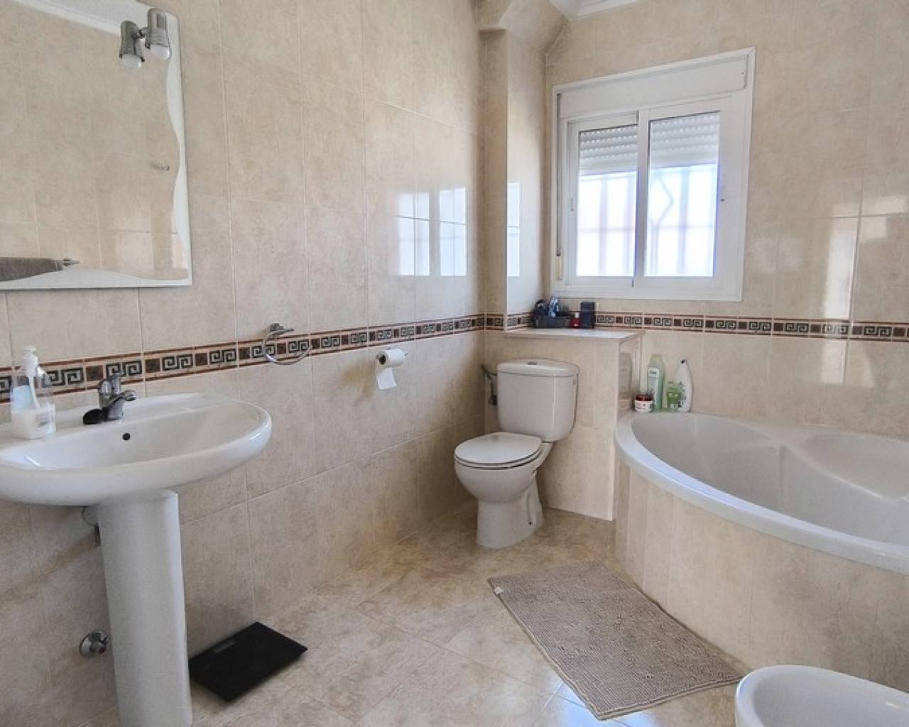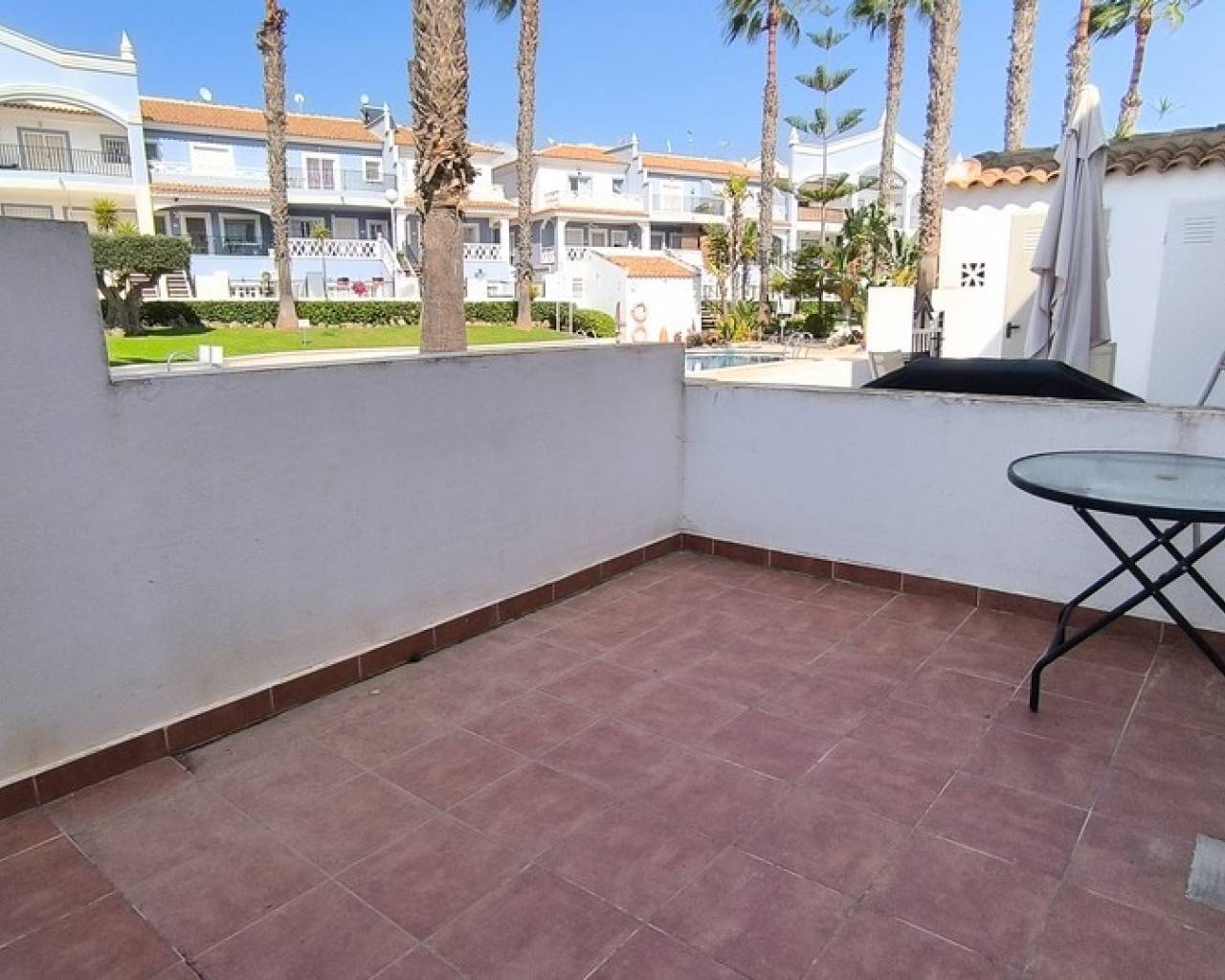 This attractive south facing Lola townhouse is located in the popular area of Doña Pepa, Ciudad Quesada. The property enjoys a prime position with beautiful open views and plenty of natural light throughout the day. The house welcomes you with a large tiled front garden, perfect for relaxing in the sun. A wide front terrace overlooks the garden and provides a lovely spot for outdoor dining or evening drinks. Inside, the ground floor offers a bright lounge and dining area, ideal for entertaining family and friends. There is also a double bedroom and a convenient shower room on this level. The separate kitchen is in excellent condition and large enough for family food preparation. The rear garden has been tiled and has a large utility room for your staorage needs. From the garden, owners enjoy direct access to the stunning communal gardens and pool. The pool features a large swimming area and a separate children’s pool. Upstairs, there is a family bathroom with a feature corner bath, a comfortable guest bedroom with a balcony overlooking the pool, and a master bedroom. The master suite boasts a larger private terrace with views of the surrounding area and the lakes. There is air conditioning throughout and the proeprty is being sold fully furnished. This property benefits from an unbeatable location. Quesada high street is just a ten minute walk, offering shops, supermarkets, cafés and restaurants. The beaches of Guardamar are only a ten minute drive. La Marquesa Golf Course is five minutes away. The local health centre and pharmacy are also close by. Alicante Airport can be reached within thirty five minutes. This south facing townhouse offers comfort, convenience, and lovely views, making it an excellent choice for holidays or permanent living.