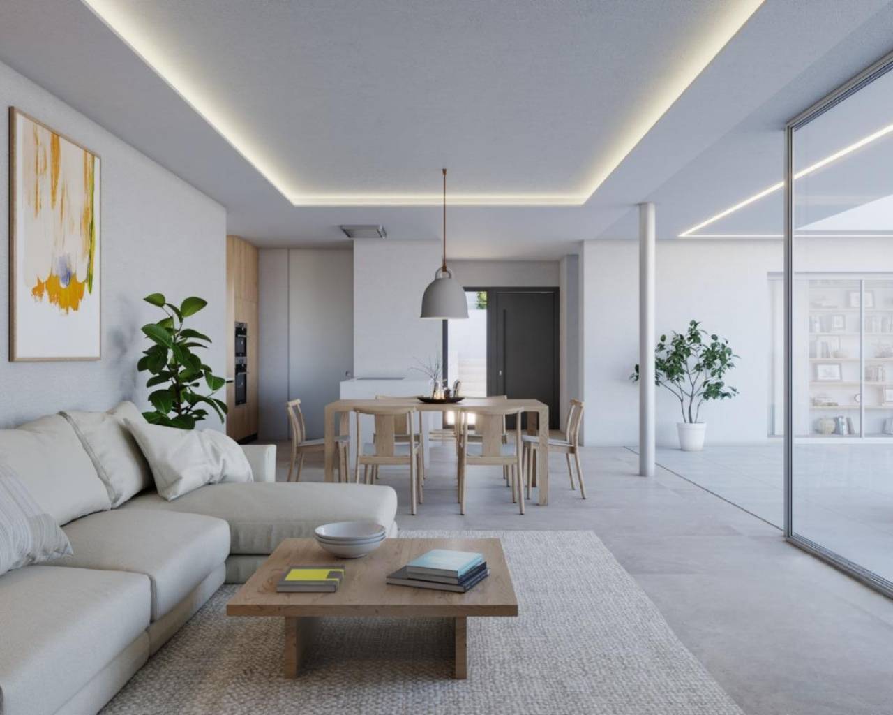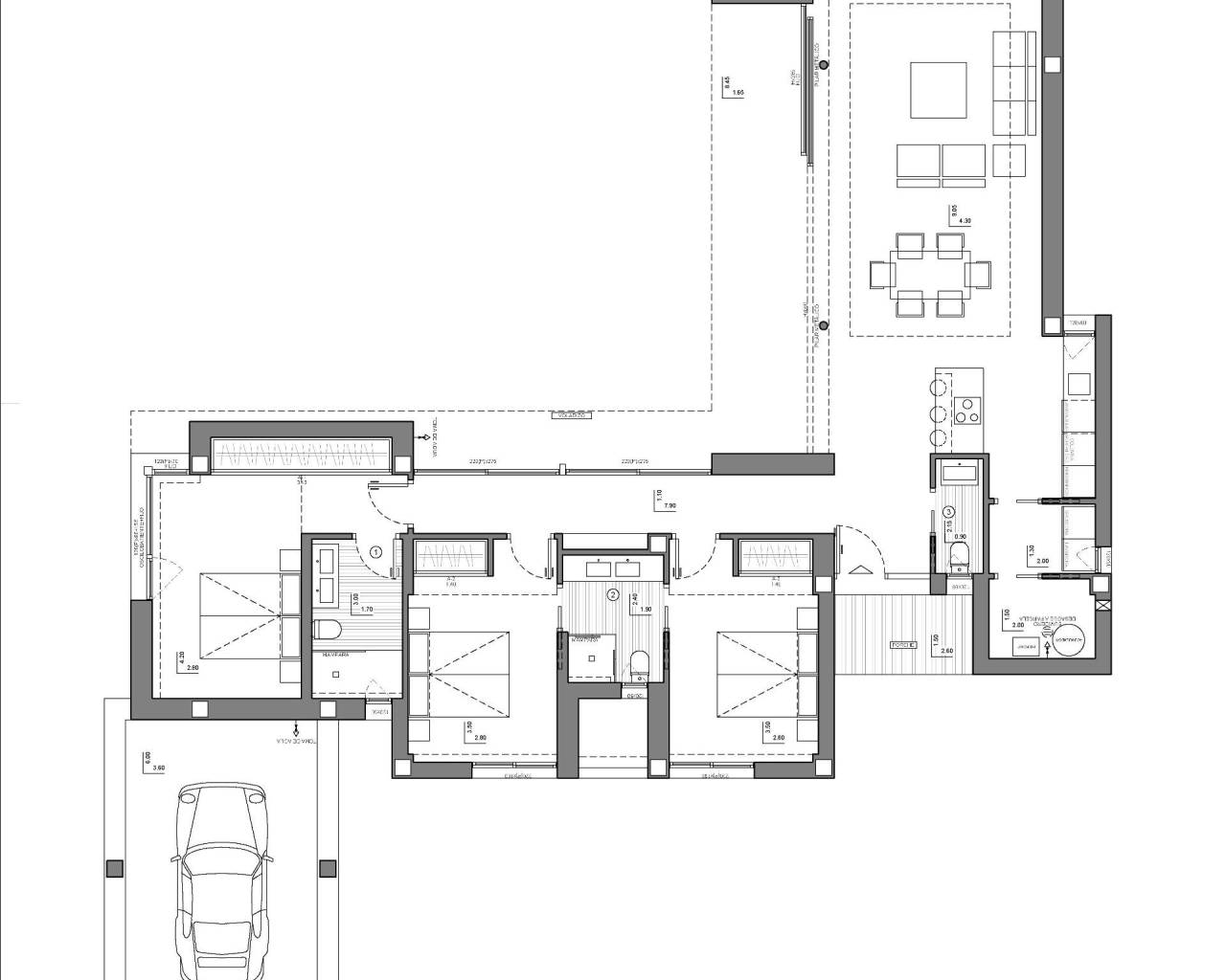 NEW BUILD VILLA WITH THE SEA VIEWS IN CUMBRE DEL SOL A house with a clear concept, to create a fusion between indoors and outdoors, by obtaining open stays, bright and functional rooms. The living room invades the terrace and invites you to enjoy the wonderful Mediterranean climate, which gives us almost 300 days of sunshine a year. Conceived in open L-shaped modules, the villa embraces the main garden, where an impressive infinity pool merges with the sea. A space open to the outside, which invites you to enjoy the sun and the Mediterranean climate, but oriented in such a way as to achieve maximum privacy. The villa is divided into two levels. Upstairs is the sleeping area, where two bedrooms share a common bathroom, while the master suite becomes a private sanctuary with its own bathroom and dressing room. From the rooms, you can enjoy breathtaking views of the sea and the mountains, creating a feeling of serenity and tranquillity that invites you to relax. On the ground floor is the day module, which opens to the outside, creating a sense of continuity and connection with the surroundings. The day module consists of an entrance hall, a guest toilet, and the tandem formed by a large living-dining room and kitchen that are perfectly integrated. Both modules converge in the outdoor area with the terrace and swimming pool as a point of connection. New Build Villa contemporary style blends with Mediterranean tradition, creating a harmonious and balanced space that invites relaxation and enjoyment of the senses. The main garden, with its Mediterranean vegetation and aromatic plants, connects you with nature. This a unique and special villa, designed to enjoy life to the fullest and to create unforgettable memories in dreamlike environment. A villa that invites you to dream of a life full of luxury, comfort and beauty, in a space where architecture and nature merge in a perfect symphony.
