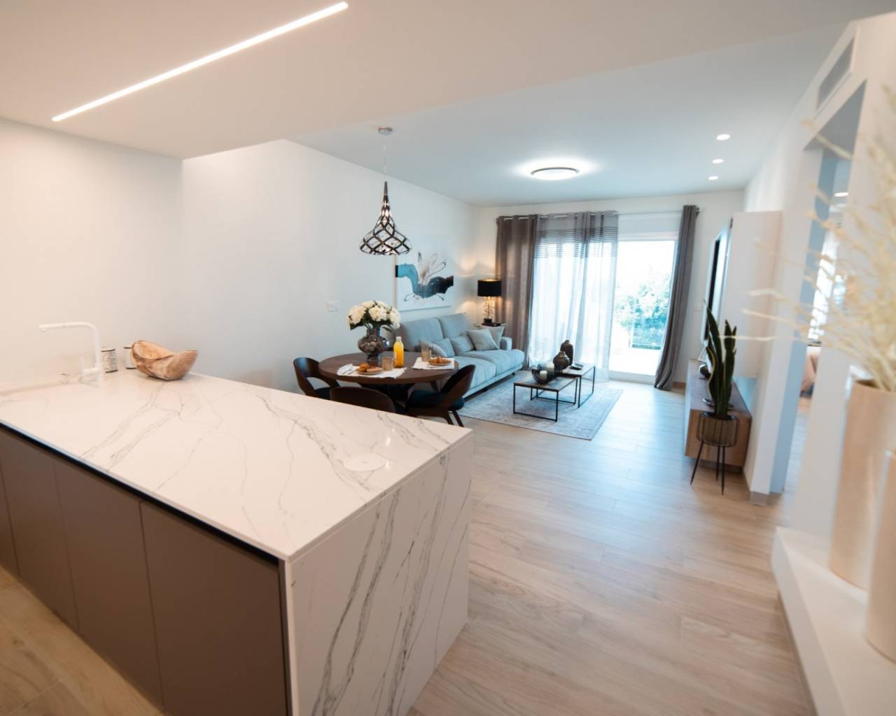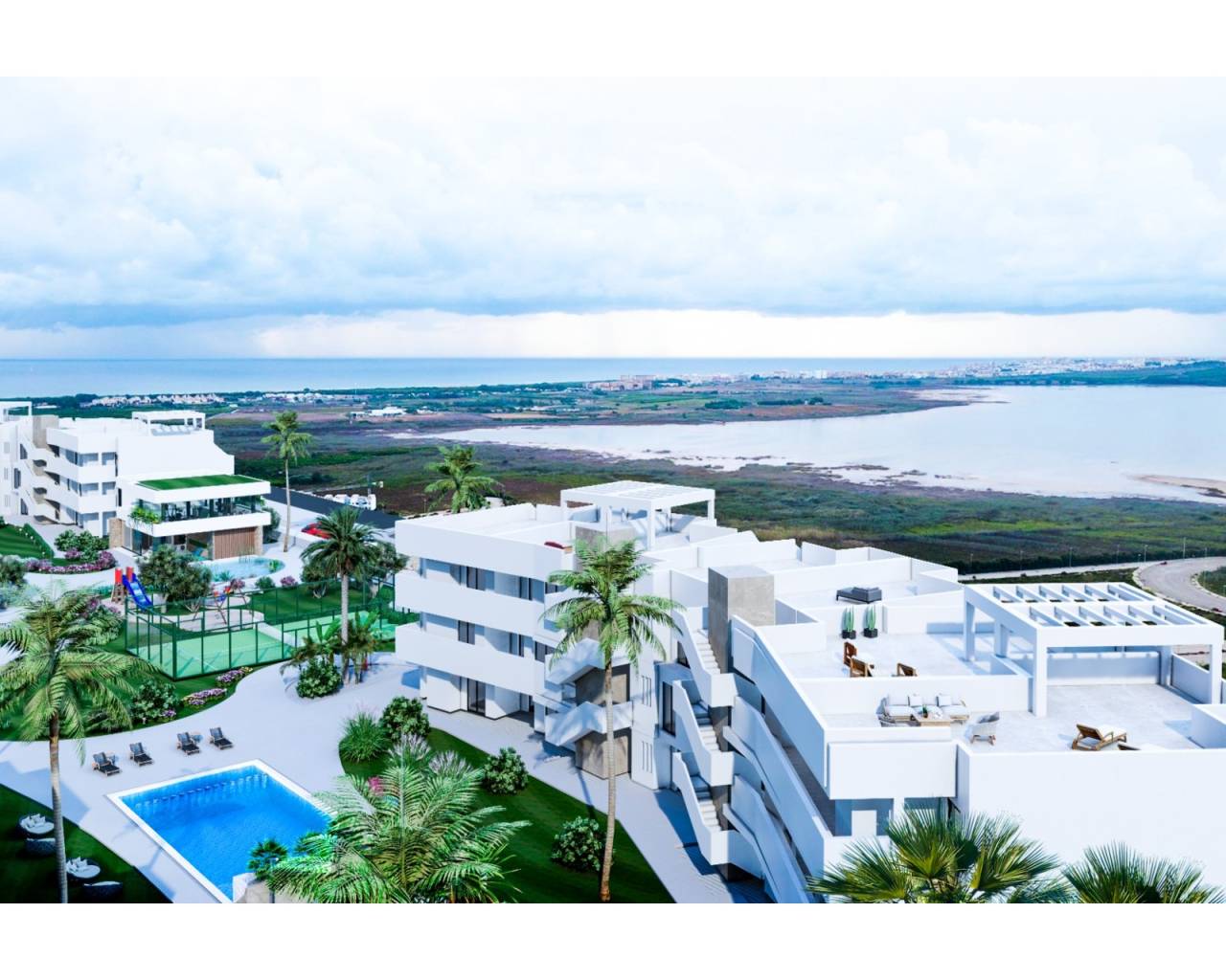 REAbeach III el Raso is a private residential complex , made up of 135 homes with 2 or 3 bedrooms , designed in a minimalist style and with high quality standards, its modern architecture harmonizes with our large open spaces, nature and swimming pools , offering a unique and peaceful environment. The AREA beach III development is situated on a unique and unparalleled plot of land, bordering the natural area of the salt lagoon. Enjoy its biodiversity and singular surroundings, close to the best beaches of the Mediterranean. AREA beach III is located in El Raso, Guardamar del Segura , and offers all kinds of services and amenities. Furthermore, thanks to its proximity to El Moncayo beach, you can enjoy a bike ride and the best climate on the Costa Blanca.