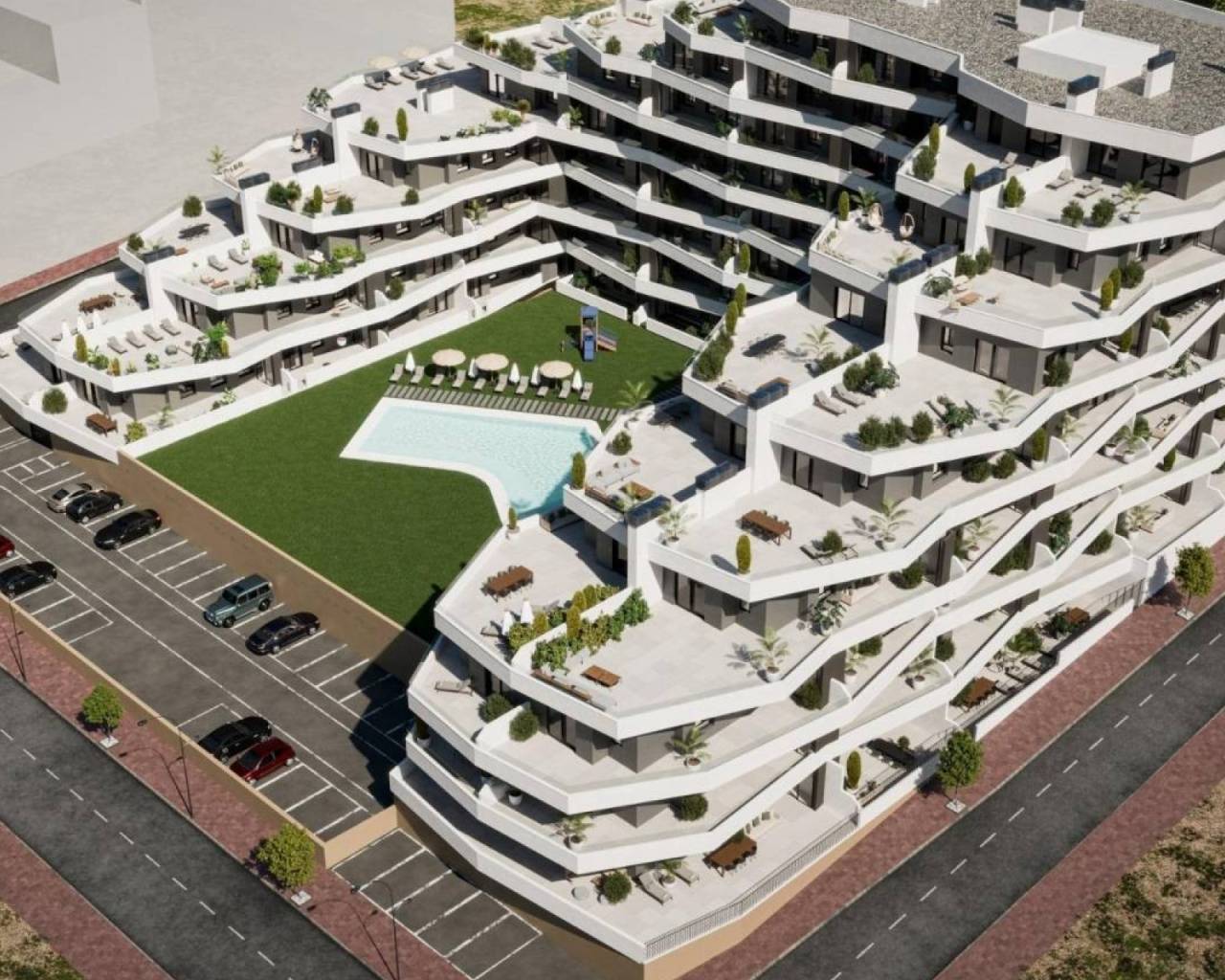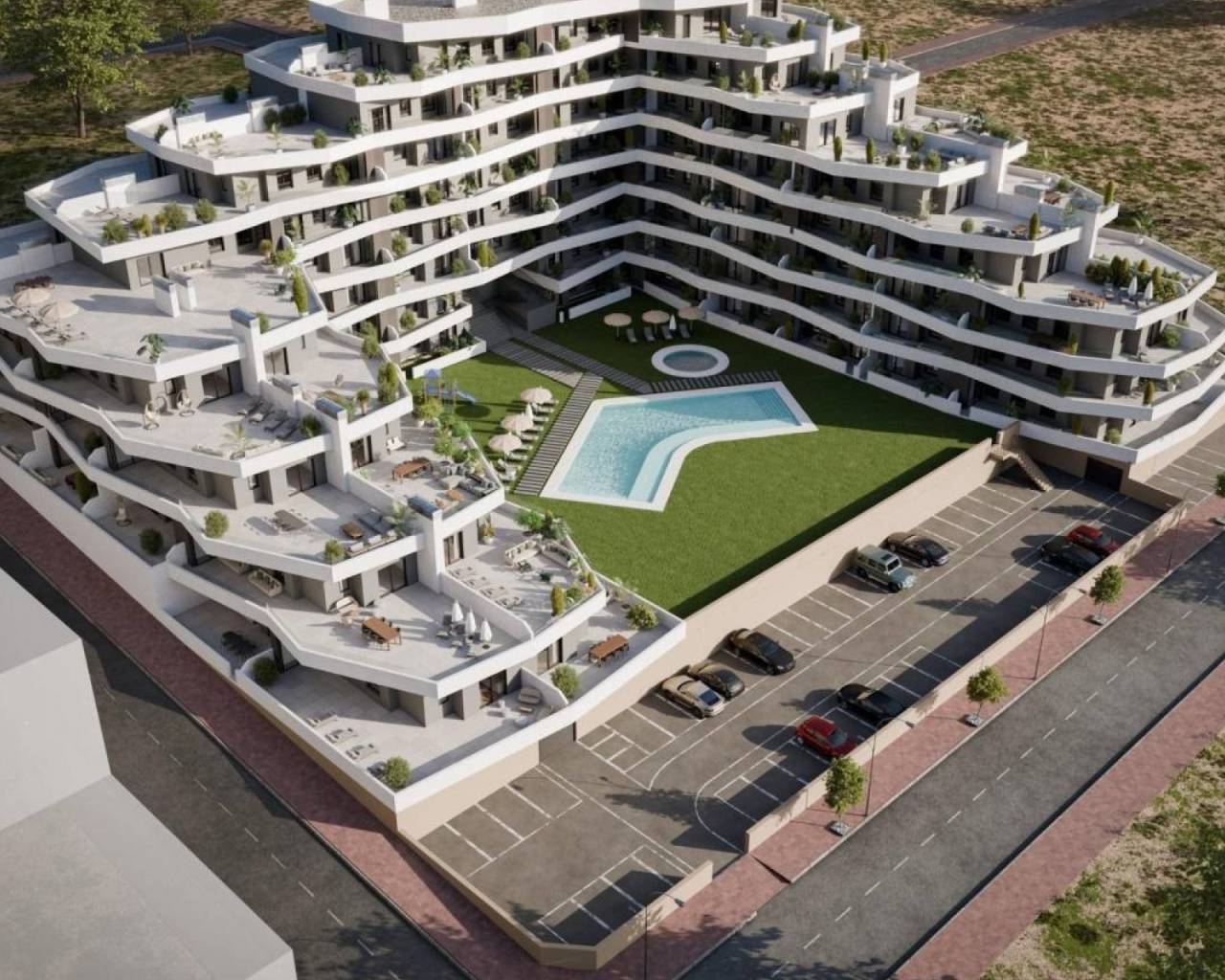 Discover Modern Living at the New Residential Development in San Miguel de Salinas Spacious Apartments with Stunning Amenities This new construction residential complex in San Miguel de Salinas offers contemporary 2- and 3-bedroom apartments with expansive terraces, thoughtfully distributed across seven floors. The gated community provides top-notch facilities, including separate swimming pools for adults and children, lush green areas, a children’s playground, and an adult wellness zone with a biosaludable circuit. Prime Location on the Costa Blanca Nestled in the charming town of San Miguel de Salinas, this development enjoys a strategic location on the Costa Blanca. It’s within walking distance of the town center, where you’ll find all the essential services for daily living, including shops, restaurants, and healthcare facilities. The property is a short drive from several points of interest: Las Colinas and Campoamor Golf Courses: Just 7 km away, perfect for golf enthusiasts. Beaches of Orihuela Costa and Torrevieja: Located approximately 10 km from the residence, offering beautiful sandy shores. Shopping Centers: Zenia Boulevard, a popular shopping destination, is only 9 km away. Alicante Airport: A convenient 50 km drive. Murcia Corvera Airport: About 55 km away, ideal for regional connections. High-Quality Specifications Each apartment is designed with modern finishes and functionality in mind: Fully equipped kitchens with induction cooktops and extractor hoods. Porcelain tile flooring throughout. Compact roller shutters for added privacy and convenience. White laminated wardrobes with overhead storage in bedrooms. Pre-installed air conditioning in the living room and bedrooms. Energy-efficient aerothermal water heaters with a 150-liter capacity. Additionally, all apartments include a designated parking space, with an optional storage room available at an additional cost. About San Miguel de Salinas San Miguel de Salinas is a picturesque municipality in the Vega Baja del Segura region, part of the vibrant Valencian Community. Situated close to the Murcia border, the town offers breathtaking views of the Torrevieja and La Mata lagoons, as well as a peaceful, family-friendly environment. Your New Home Awaits Whether you're looking for a vacation retreat or a permanent residence, this new development in San Miguel de Salinas combines luxury, convenience, and an unbeatable location. Contact us today to schedule a visit and take the first step toward owning your dream property on the Costa Blanca!