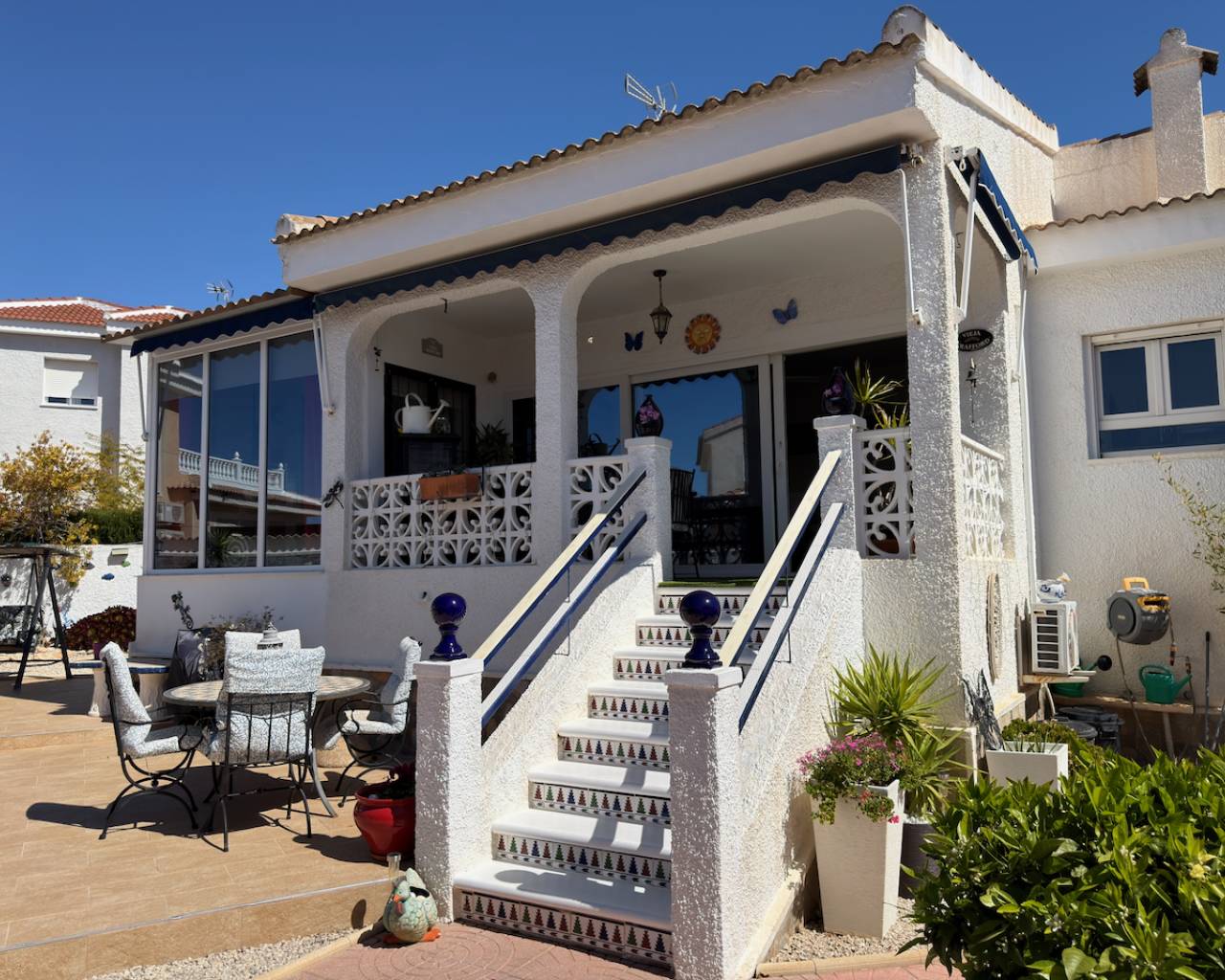 This charming three-bedroom detached villa boasts a very pretty garden and a peaceful patio area, perfect for relaxing, sunbathing, and barbecuing. The property features three spacious double bedrooms and two bathrooms, including a stylish en-suite.