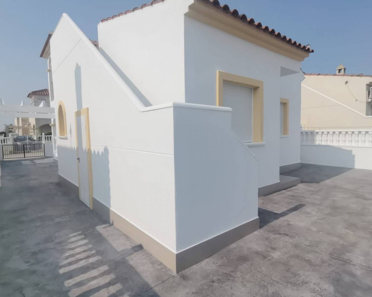 Large outdoor space, parking inside the plot, solarium and storage room.