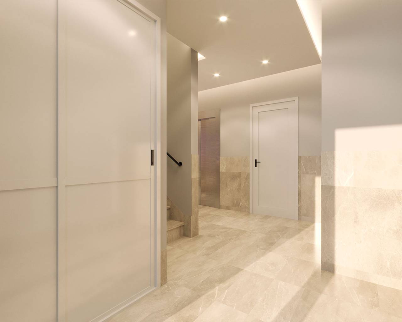 The common areas of this residential complex in Torrevieja are designed to offer residents a comfortable and relaxing lifestyle. The landscaped areas create a natural and serene environment, perfect for strolling or simply enjoying the outdoors. The communal pool is an ideal meeting point to cool off and socialize with neighbors. The communal jacuzzi adds a touch of luxury, allowing residents to relax and enjoy a moment of well-being. The communal solarium offers an exclusive space for sunbathing and enjoying the views, all in a safe and private environment.